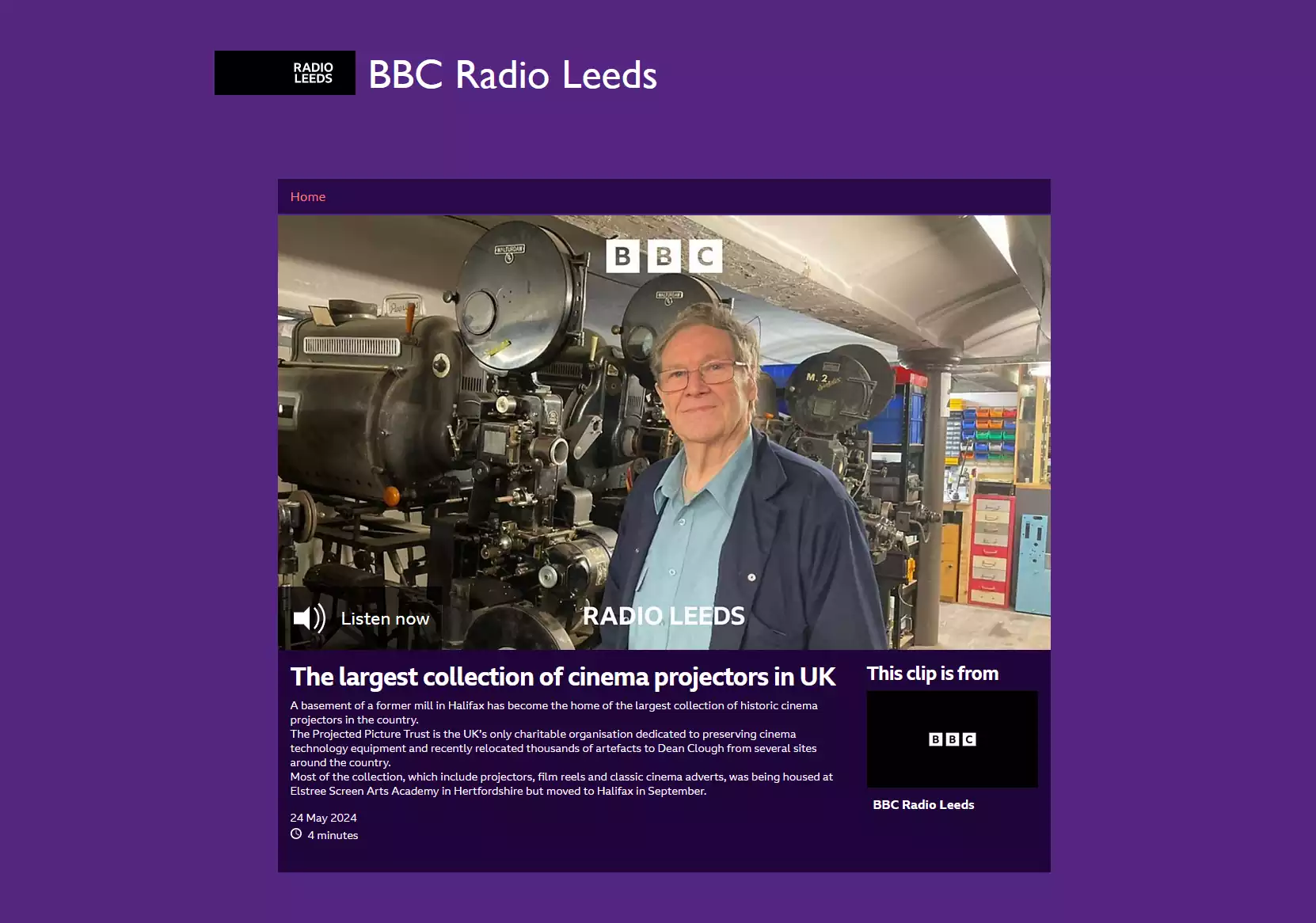 Jack Hadaway-Weller visited Dean Clough Mills in Halifax to meet Dion Hanson and the meeting was broadcast on BBC Radio Leeds.