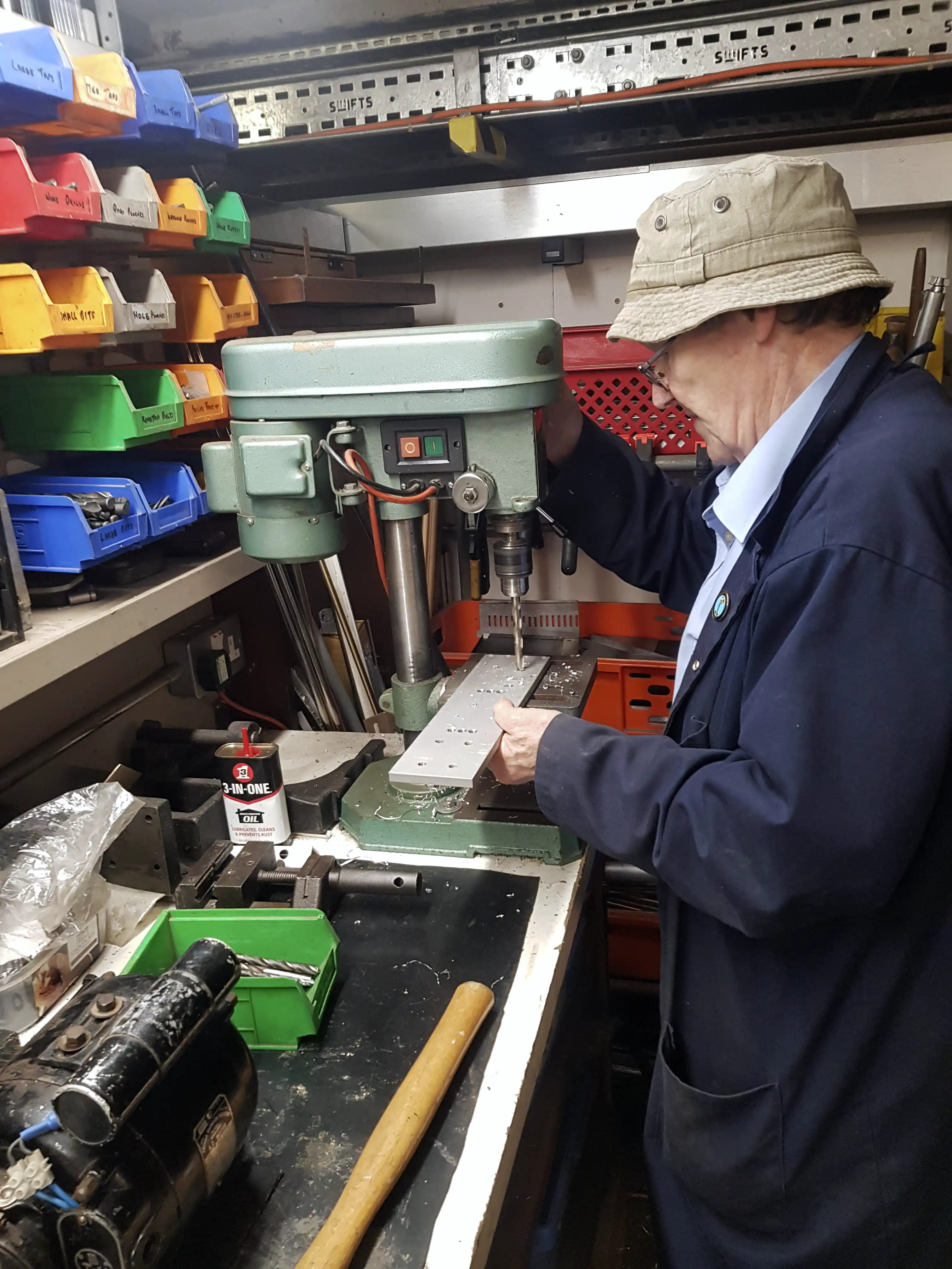 Fig 2 shows Allan making a bracket to fit a limelight into a